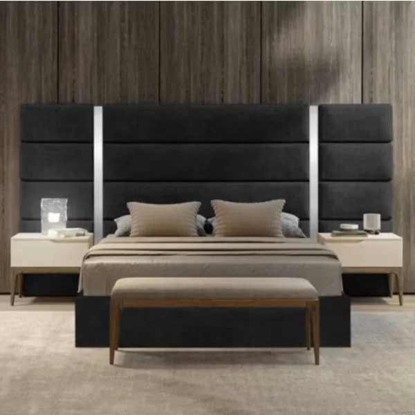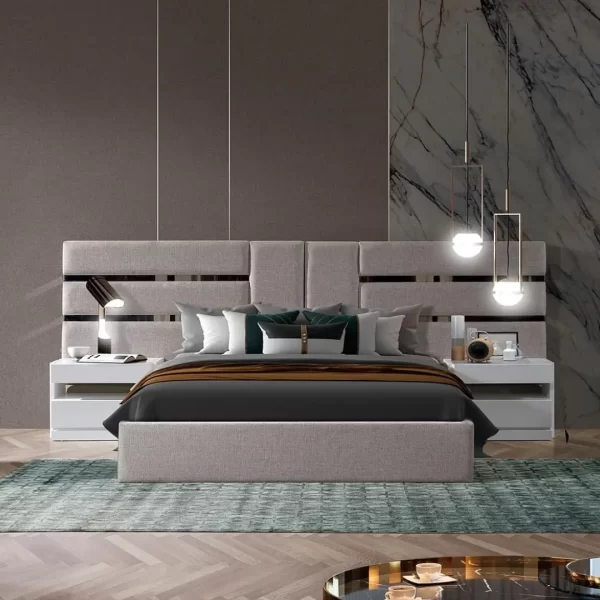A Cama Roma é a personificação do luxo e do conforto, projetada para elevar o seu quarto a novos patamares de sofisticação. Com faixas verticais em um tecido especial que imita a elegância de um espelho, adicionando um charme sofisticado e contemporâneo ao seu ambiente.