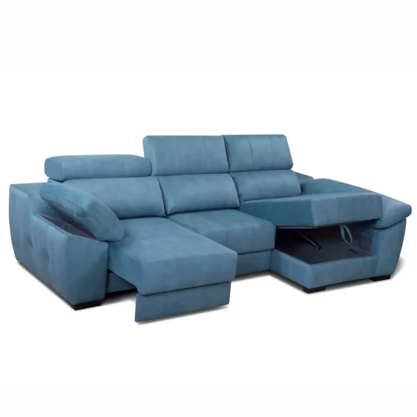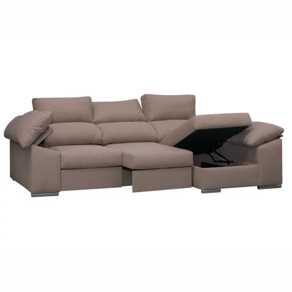 O Sofá Chaise Long Bolzano combina conforto e versatilidade. Assentos extensíveis, cabeços reclináveis e arrumação na chaise. Tecido microfibra de alta qualidade.