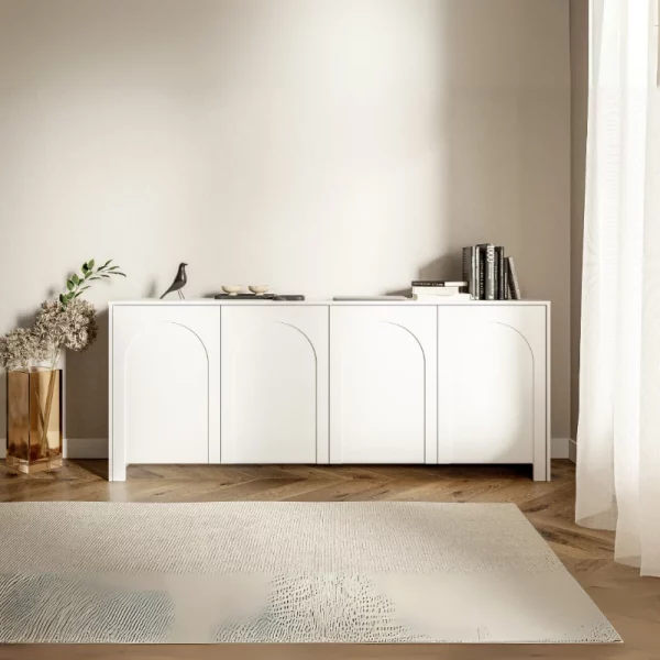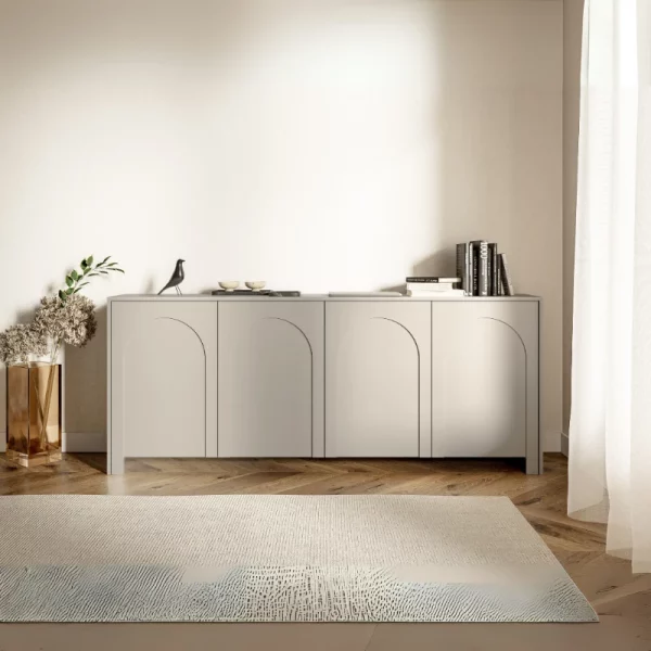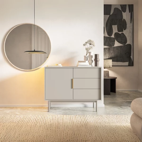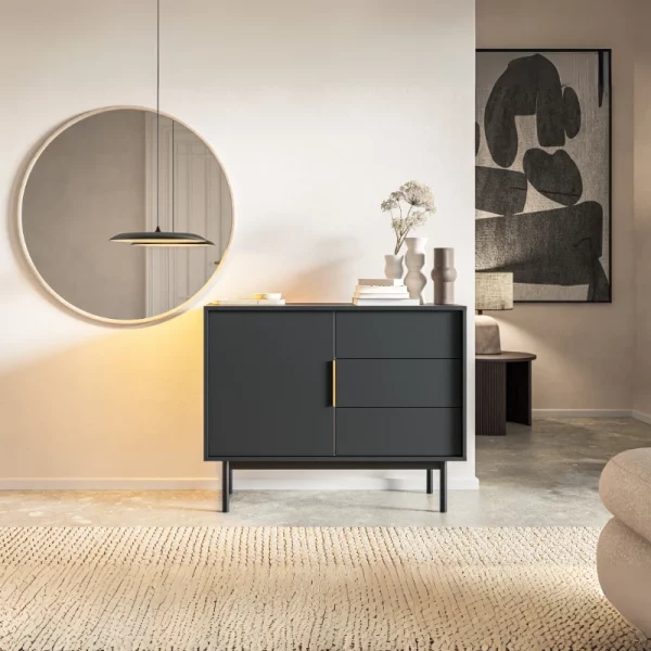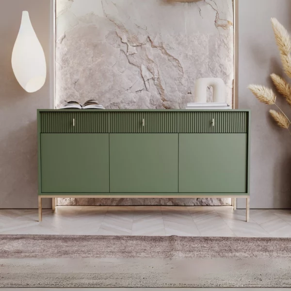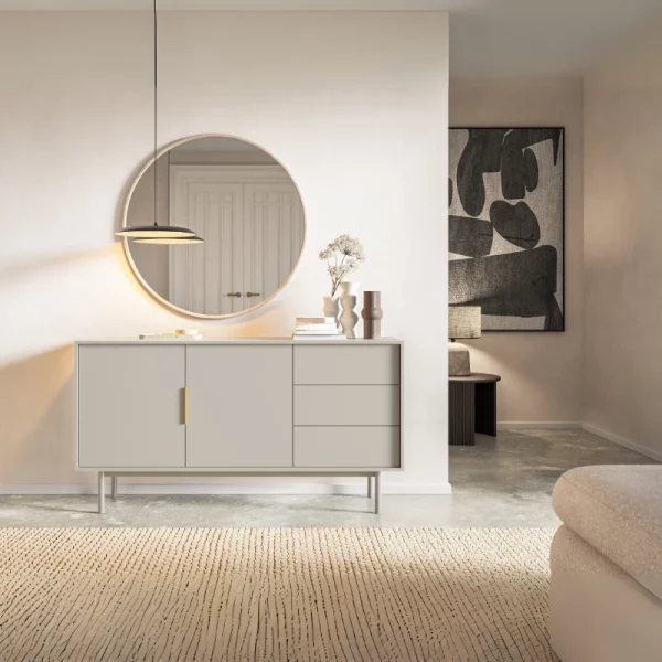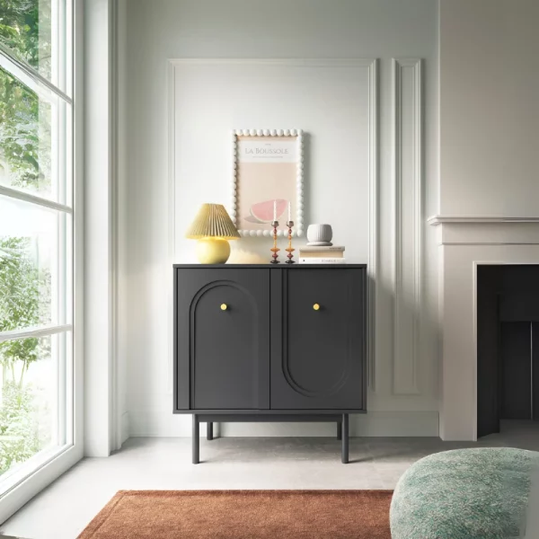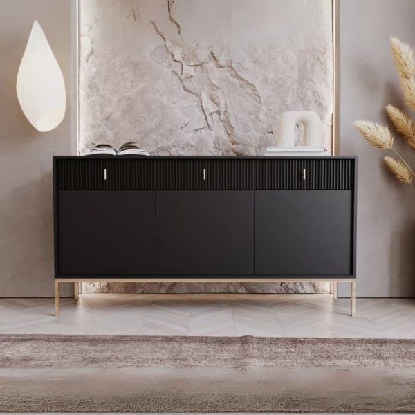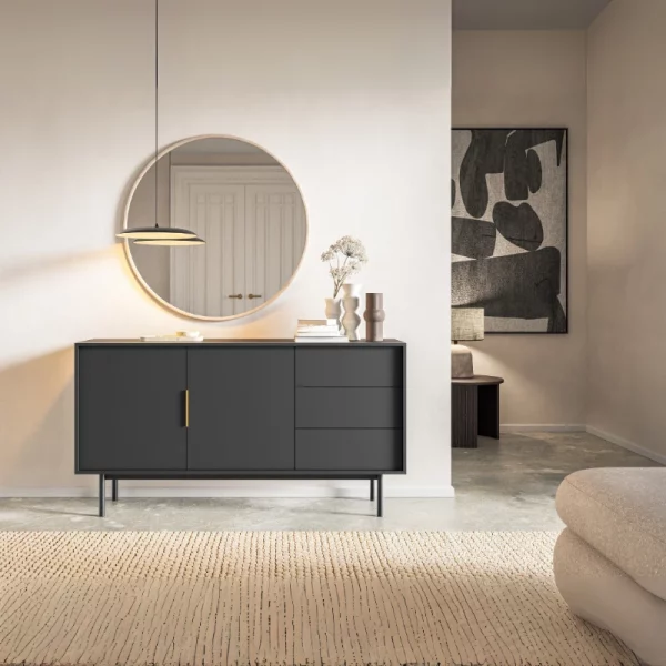 Peça versátil e elegante, ideal para sala de jantar (apoio ao serviço de mesa e arrumação de louça) ou sala de estar, arrumação de livros ou objectos decorativos). Design moderno com estrutura robusta, disponível em três cores sofisticadas: Preto, Cashmere ou Smoke Green.