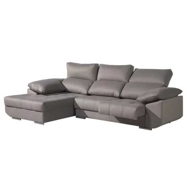Sofá Chaise Long Saragoça, medida de 270x150cm com assentos deslizantes, encostos reclináveis e espaço de arrumação na chaise. Um sofá que une funcionalidade e estilo para tornar sua sala ainda mais aconchegante.