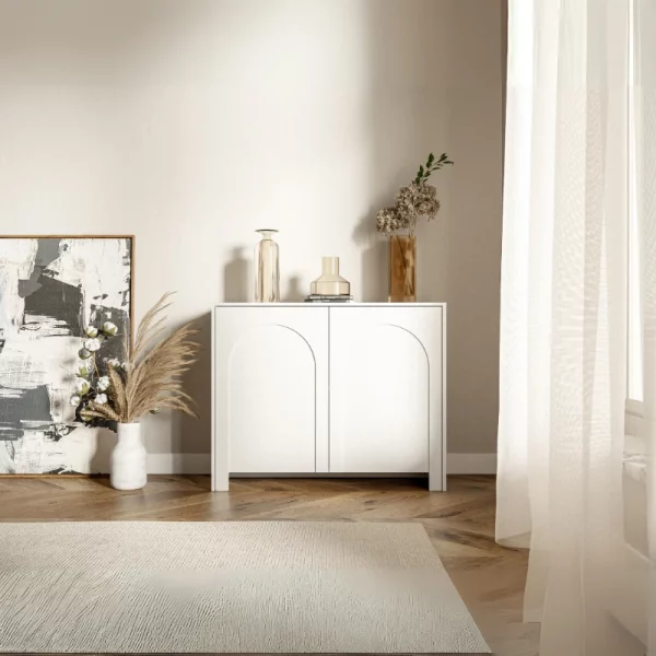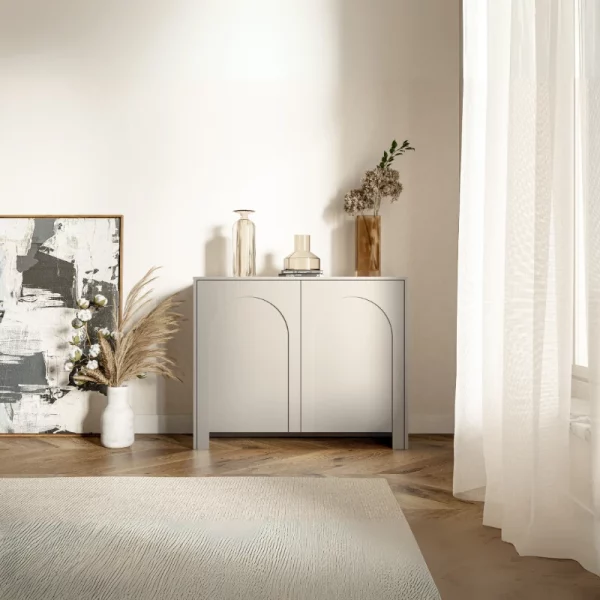 Peça versátil e elegante, ideal para sala de jantar (apoio ao serviço de mesa e arrumação de louça) ou sala de estar, arrumação de livros ou objectos decorativos). Design moderno com estrutura robusta, disponível em três cores sofisticadas: Preto, Cashmere ou Smoke Green.