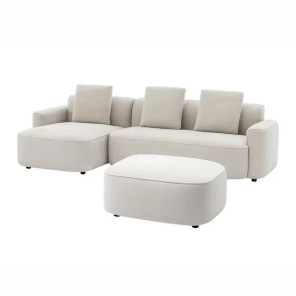 Sofá Chaise Long Londres com 270x160cm e Puff 80x60cm. Perfeito para quem procura conforto, sofisticação e praticidade para a sua sala. Ideal para espaços modernos e acolhedores.