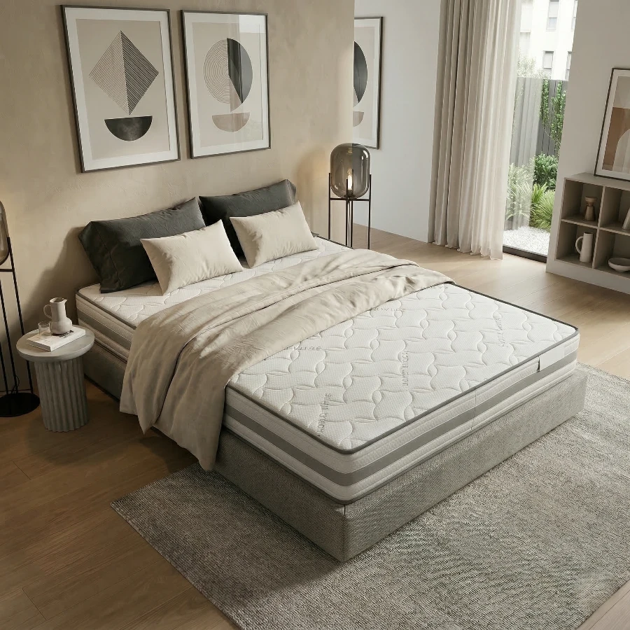 Apoio Superior com Espuma de Alta Resiliência: No coração deste colchão está uma camada de Espuma de Alta Resiliência, que oferece um suporte ergonômico excepcional para a coluna. Esta tecnologia garante que o colchão mantenha sua forma e ofereça durabilidade a longo prazo.
