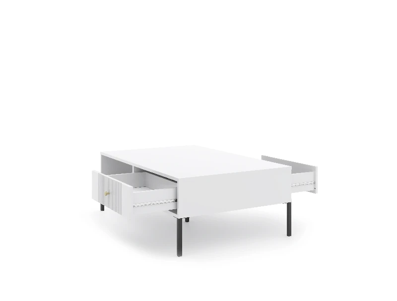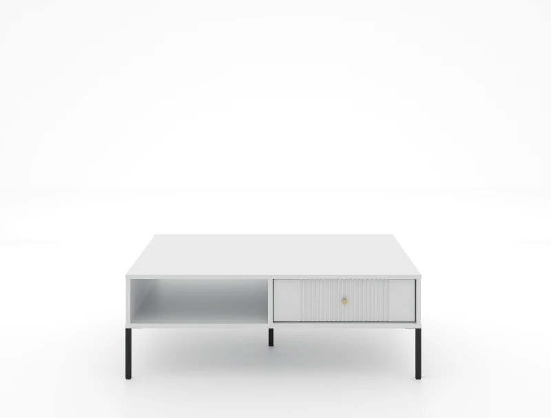 Descubra a mesa de centro K-503. Com um acabamento brilhante em Branco Soft, esta peça é a escolha ideal para iluminar e amplificar visualmente qualquer divisão. O seu design limpo e retilíneo, com uma superfície espaçosa de 100×50 cm e uma altura perfeita de 41.6 cm, oferece a funcionalidade ideal para o seu dia a dia sem sacrificar o estilo minimalista.