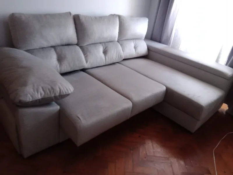 Sofá super bonito e confortável. Tem bastante arrumação o que é ótimo para quem tem filhos. O tecido é muito bonito e de alta qualidade.