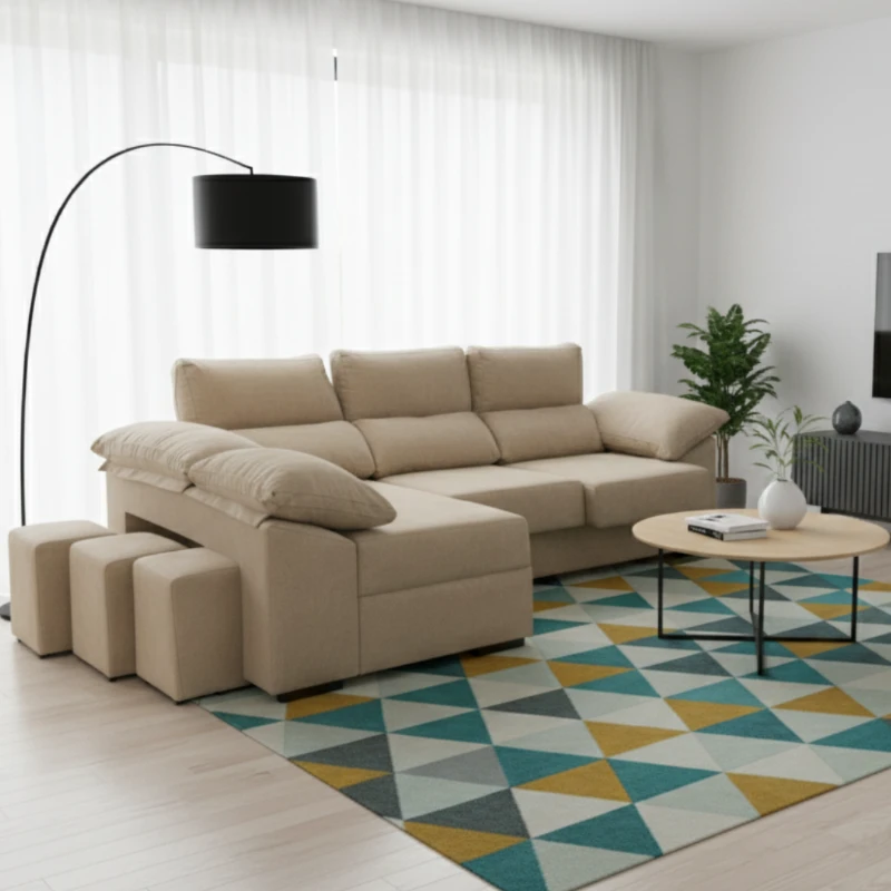Andávamos há meses à procura de um sofá com chaise longue que fosse espaçoso para nós os quatro e este é perfeito. A qualidade do tecido parece ser daquelas ‘anti-manchas’, o que é ótimo com crianças. Estamos muito satisfeitos com o preço, foi um achado. O melhor foi o tempo de entrega: encomendei numa segunda e na sexta-feira seguinte já cá estava! A equipa de entrega foi muito rápida e eficiente a montar tudo. Serviço excelente.