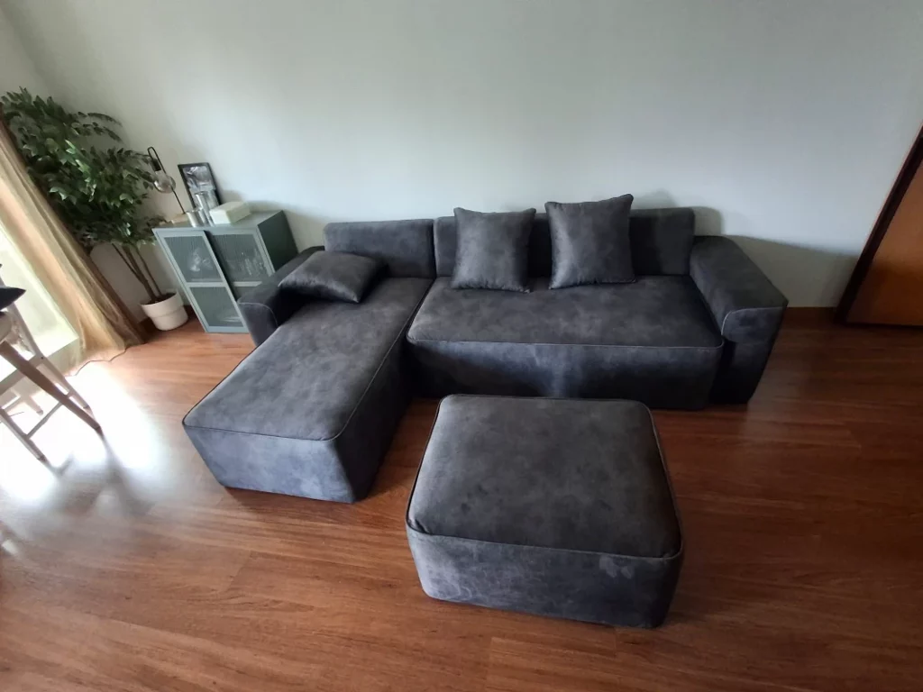 Adorei o sofá! A qualidade do tecido e o acabamento são impecáveis, superou minhas expectativas. A entrega foi um pouco demorada, levou uns 20 dias, mas valeu a pena a espera. Ele é exatamente como na foto, um estilo moderno e super confortável. Recomendo para quem busca durabilidade e design!”