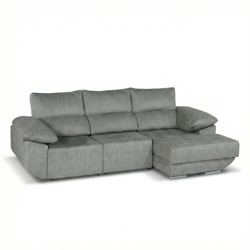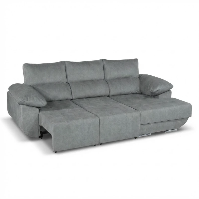 Sofá chaise long moderno e funcional, com sistema de sofá-cama ideal para receber visitas. Possui cabeços reclináveis para maior conforto e arrumação integrada na chaise, perfeita para manter o espaço organizado.