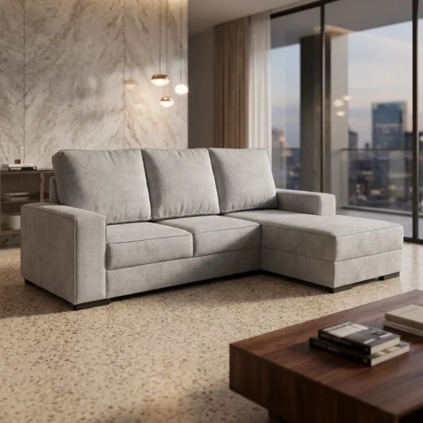 O Sofá Chaise Long Roma combina conforto, funcionalidade e design moderno, sendo ideal para quem procura versatilidade na sala de estar.