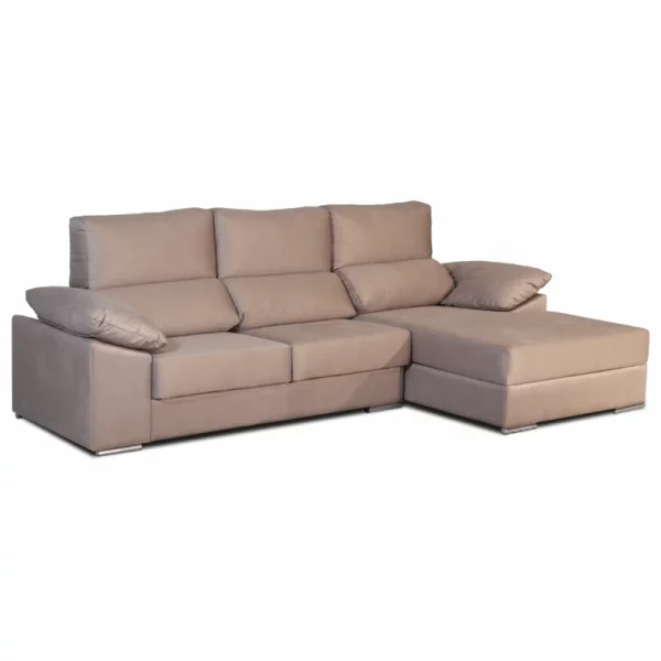 O Sofá Chaise Long Praga combina assentos deslizantes, encostos reclináveis e arrumação na chaise. Tecido microfibra, disponível em 240x160cm ou 270x160cm.