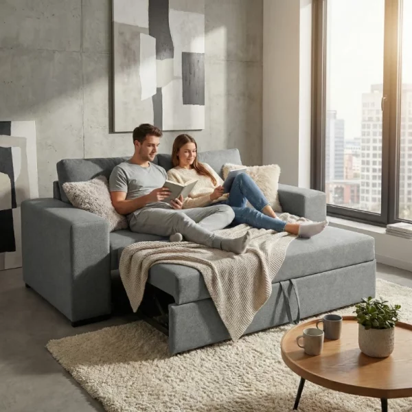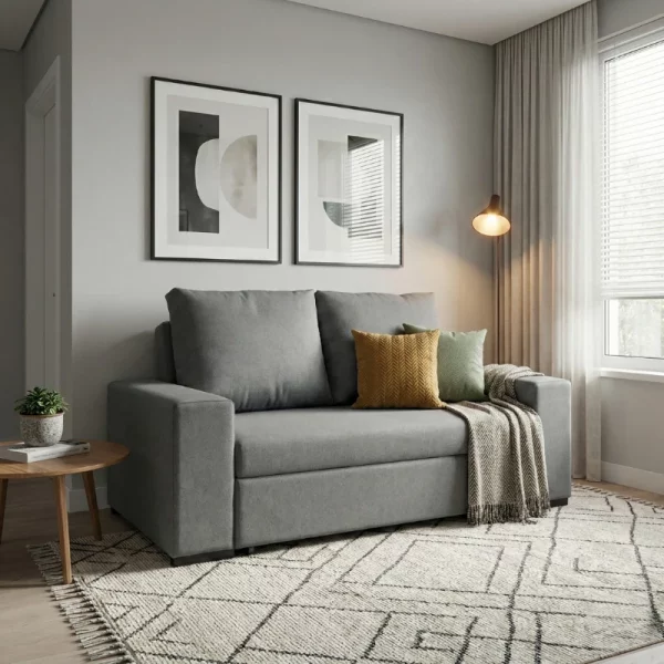 O Sofá Cama Oriente é a escolha ideal para quem procura conforto, funcionalidade e design moderno num único modelo. Fabricado em tecido Microfibra, garante um toque suave, elevada durabilidade e fácil manutenção.
