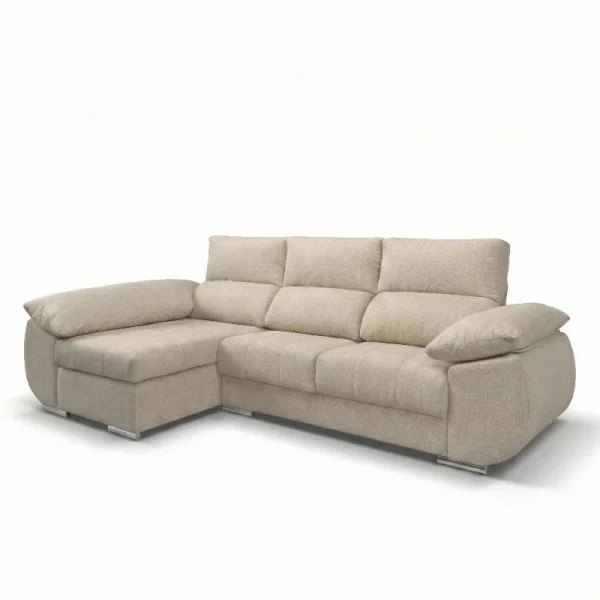 O Sofá Chaise Long Fiesta, com medidas de 290x170cm, destaca-se pelo seu design moderno aliado a uma elevada funcionalidade. Ideal para salas espaçosas, oferece um conforto excecional graças aos assentos extensíveis e aos cabeços reclináveis, permitindo ajustar a posição conforme as suas necessidades de descanso.